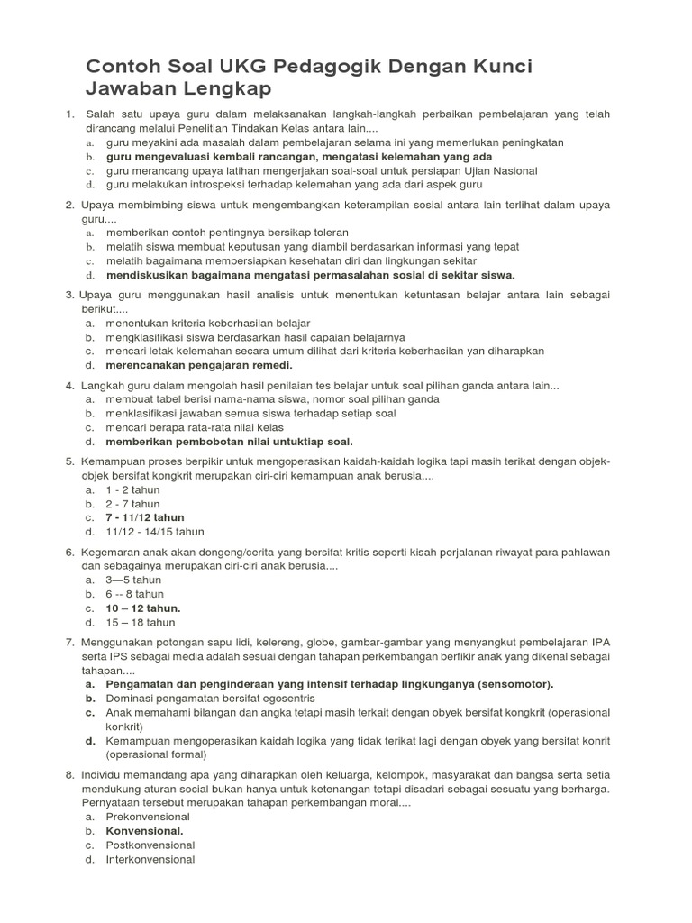 Soal Ukg Pedagogik Sd Kunci Jawaban