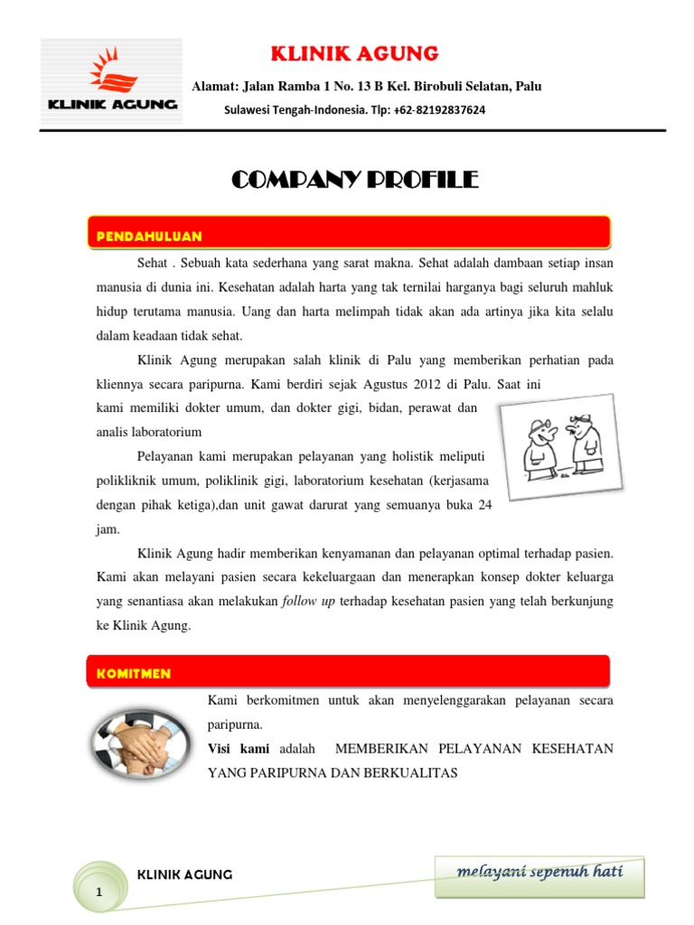 Dengan di dukung peralatan yang lengkap SDM profesional dan dokter-dokter. Download Contoh Profil Klinik Pratama Pdf PDF 1700 MB - SamPDF SamPDF Company Profile Rumah Sakit JIH Rumah Sakit JIH adalah sebuah rumah sakit di Yogyakarta yang mengembangkan layanan prima dengan fokus pada kebutuhan pasien. Selain praktik dan klinik kebidanan terdapat juga pneunjang berupa fasilitas laboratorium kamar operasi.