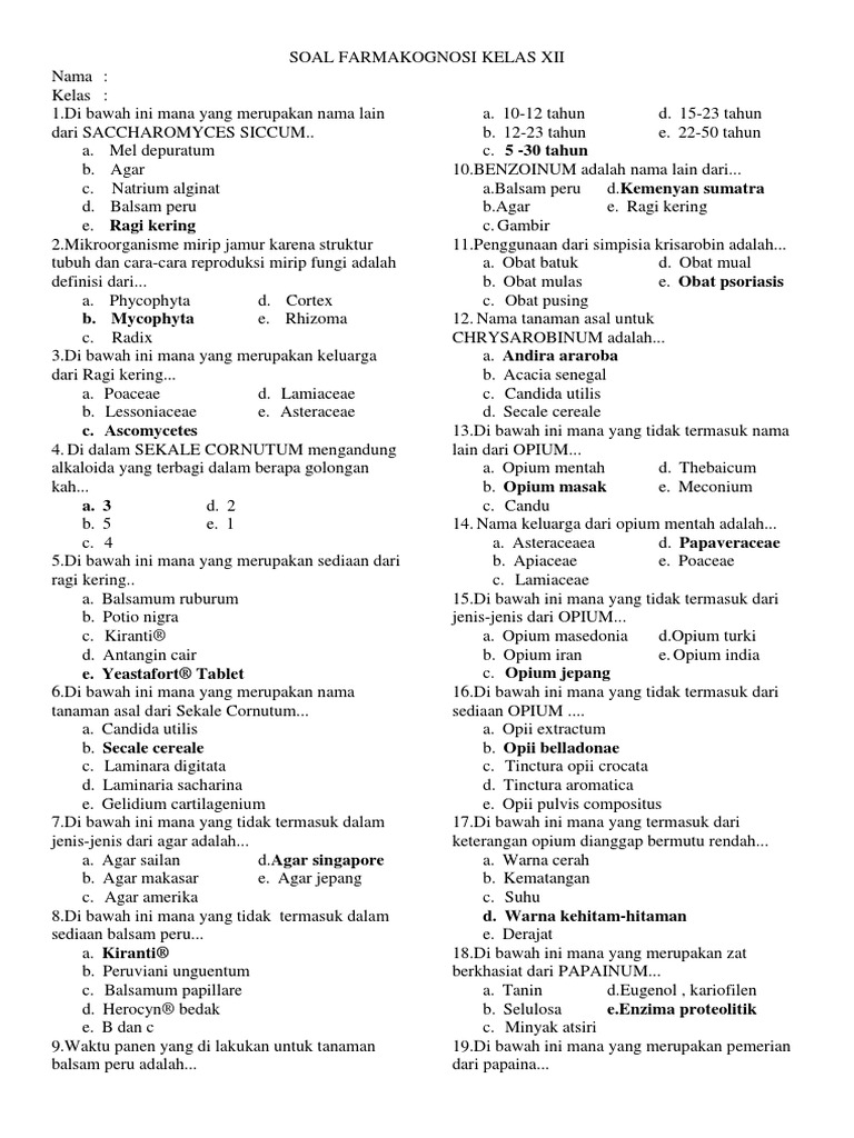 Kumpulan soal farmakognosi kelas xii. Terdapat soal tentang golongan gas mulia halogen alkali dan alkali tanah. Rulfi Kelas XII MIPA 5 U LANG AN TENGAH SEMESTER. Pada kesempatan kaliini kami akan berbagi informasi mengenai soal UAS produktif farmasi.