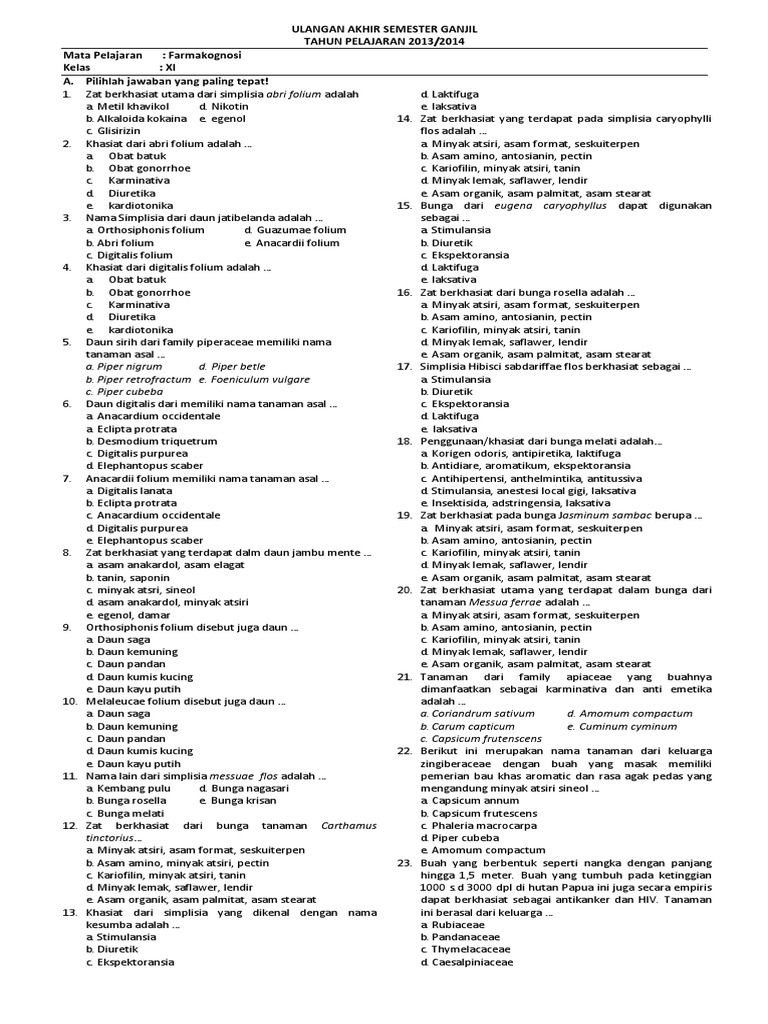 Contoh Soal Uas Farmakognosi Kelas 12 Semester 1 Dan Jawabanya Inputsoal Com
